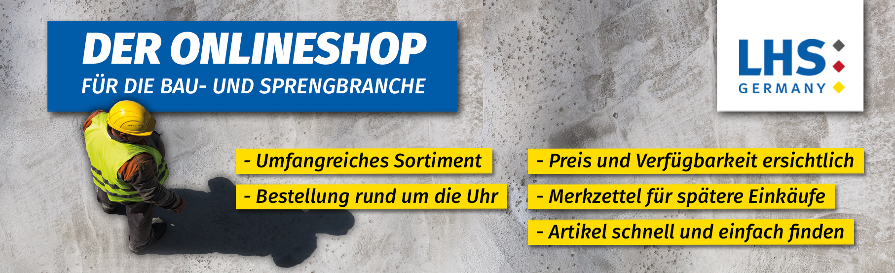 Die LHS-Germany GmbH ist Ihr Spezialist für bewährte und innovative Produkte für Sprengarbeiten, Bauarbeiten und Behörden. Seit 1975 sind wir ein zuverlässiger Partner im Bereich der Sprengtechnik für Sprengzubehör und Bergbau-Geschenke. Durch unseren Onlineshop können auch Privatkunden und Branchenfremde bequem bei uns einkaufen. Entdecken Sie im Onlineshop LHS24.de unsere vielfältigen Produktkategorien und lassen Sie sich von unserem stetig wachsenden Angebot überzeugen. Wir bieten neben einem umfangreichen und freiverkäuflichen Sortiment an Zündgeräten und Spezialprodukten auch ausgewählte Produkte in den Bereichen Gefahrguttransport, Werkzeuge, Messgeräte, Signalgeräte, Arbeitsschutz, Absperrtechnik und Betriebsausstattung. Bei der Auswahl unseres Produktangebots achten wir stets auf Qualität jedes einzelnen Produkts. So können Sie sich darauf verlassen mit Ihrem Kauf die richtige Wahl getroffen zu haben.
