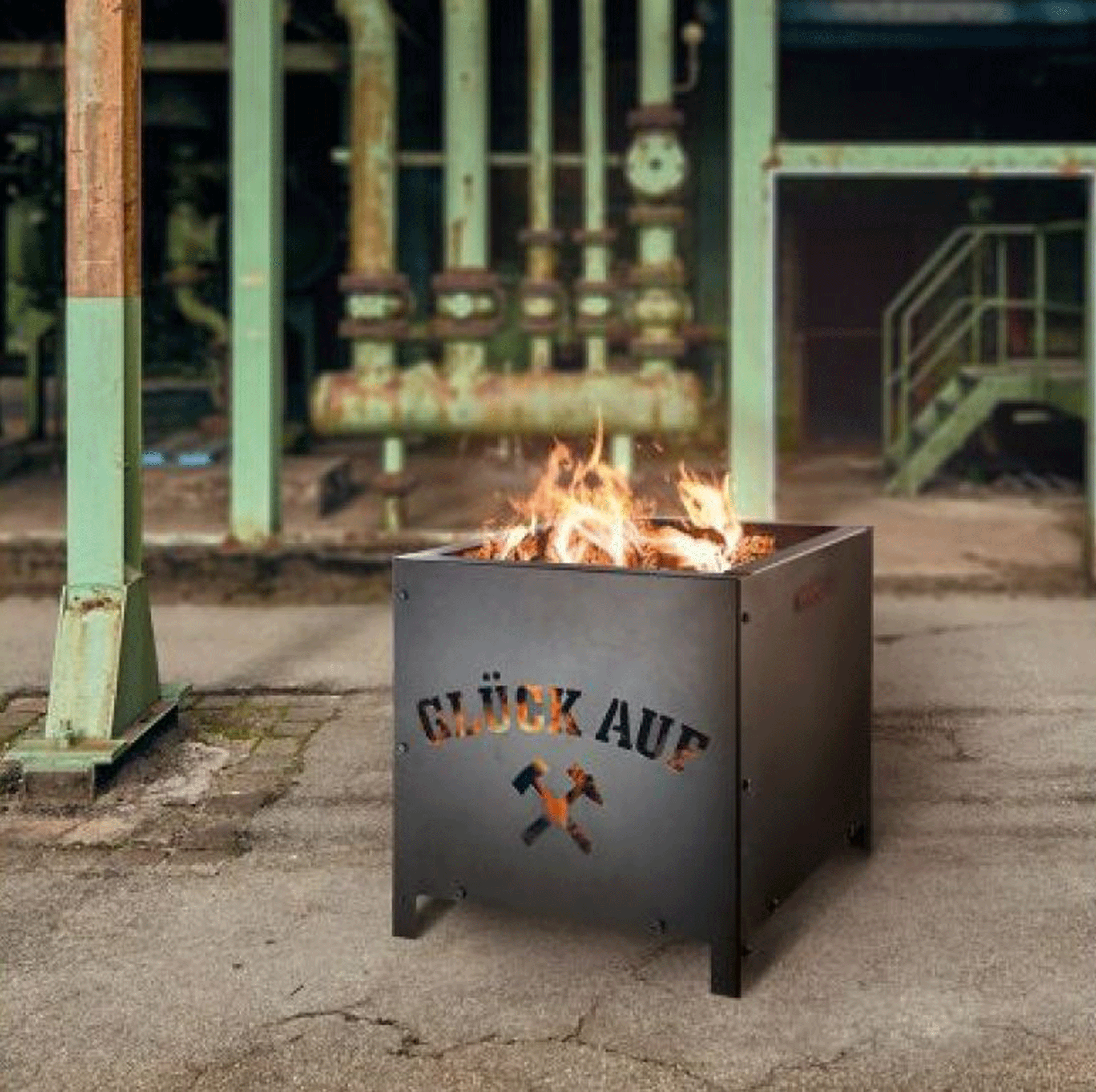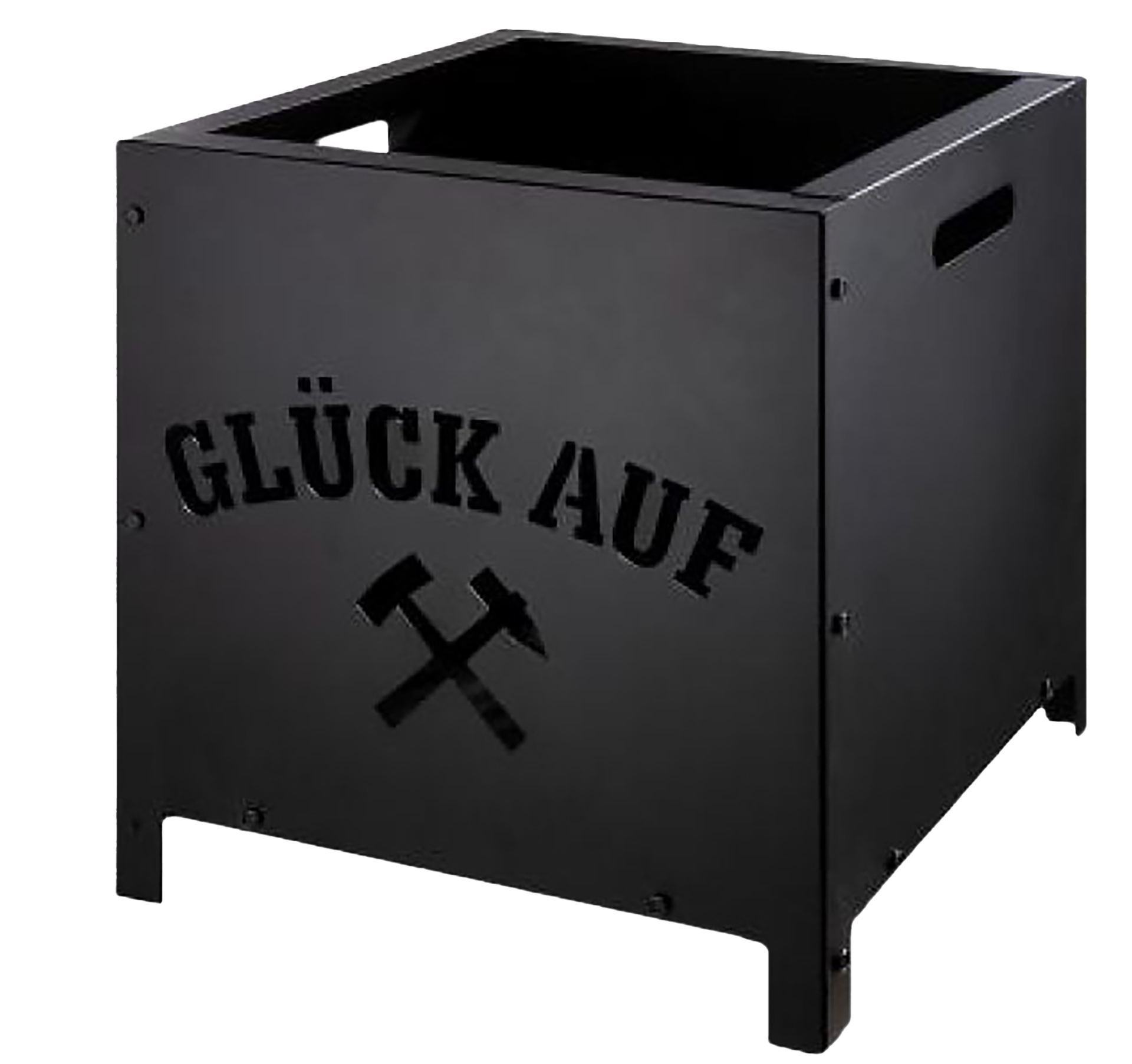 Der Feuerkorb Glück Auf ist aus Metall gefertigt und hat seitlich 2 praktische Tragegriffe.